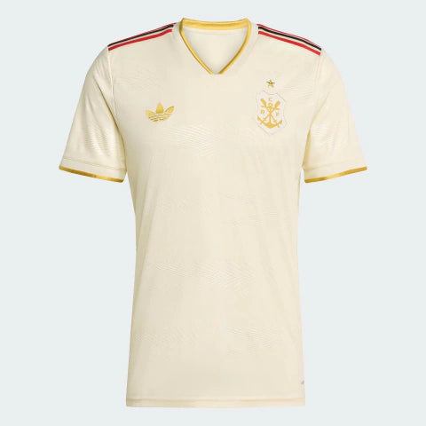 A Camisa adidas Flamengo 2025/26 I - Torcedor é a nova armadura da Nação Rubro-Negra. Com as tradicionais faixas horizontais em vermelho e preto, o manto chega com visual moderno, gola renovada e tecido leve que acompanha o torcedor em qualquer batalha no Maracanã, no sofá ou no dia a dia.